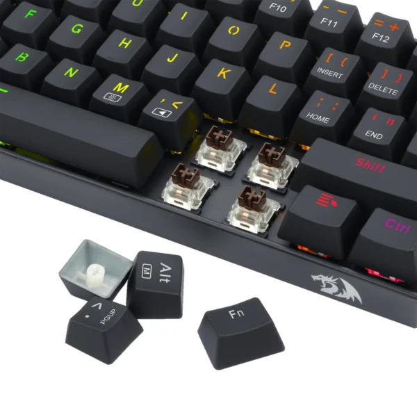 El teclado Redragon K530 Draconic es un modelo mecánico inalámbrico ultra-compacto. Con switches Brown, conectividad Bluetooth y 2.4GHz, y una vibrante iluminación RGB, es perfecto para gamers que buscan un setup minimalista sin sacrificar rendimiento.